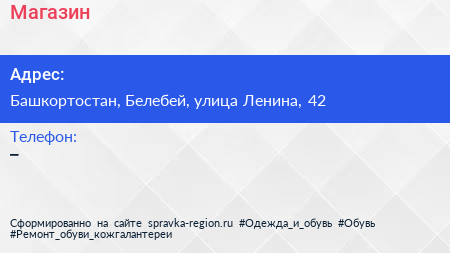 Магазин по адресу Башкортостан, Белебей, улица Ленина, 42 в дальнейшем Организация, размещена в следующих категориях: