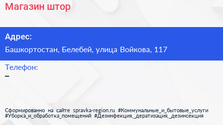 Магазин штор по адресу Башкортостан, Белебей, улица Войкова, 117 в дальнейшем Организация, размещена в следующих категориях: