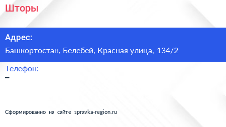Шторы по адресу Башкортостан, Белебей, Красная улица, 134/2 в дальнейшем Организация, размещена в следующих категориях: