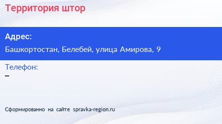 Территория штор по адресу Башкортостан, Белебей, улица Амирова, 9 в дальнейшем Организация, размещена в следующих категориях: