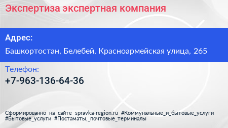 Экспертиза, экспертная компания по адресу Башкортостан, Белебей, Красноармейская улица, 265 в дальнейшем Организация, размещена в следующих категориях: