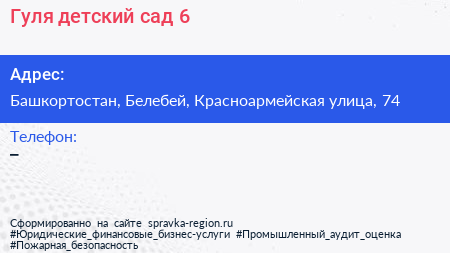 Гуля, детский сад №6 по адресу Башкортостан, Белебей, Красноармейская улица, 74 в дальнейшем Организация, размещена в следующих категориях: