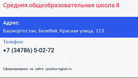 Средняя общеобразовательная школа №8 по адресу Башкортостан, Белебей, Красная улица, 113 в дальнейшем Организация, размещена в следующих категориях: