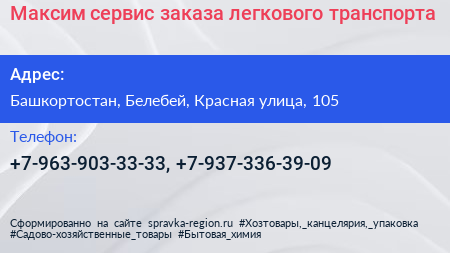 Максим, сервис заказа легкового транспорта по адресу Башкортостан, Белебей, Красная улица, 105 в дальнейшем Организация, размещена в следующих категориях: