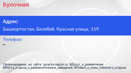 Булочная по адресу Башкортостан, Белебей, Красная улица, 119 в дальнейшем Организация, размещена в следующих категориях: