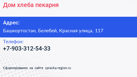 Дом хлеба, пекарня по адресу Башкортостан, Белебей, Красная улица, 117 в дальнейшем Организация, размещена в следующих категориях: