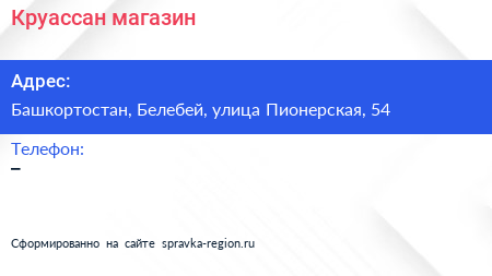 Круассан, магазин по адресу Башкортостан, Белебей, улица Пионерская, 54 в дальнейшем Организация, размещена в следующих категориях: