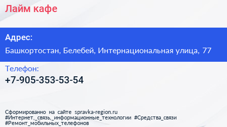 Лайм, кафе по адресу Башкортостан, Белебей, Интернациональная улица, 77 в дальнейшем Организация, размещена в следующих категориях: