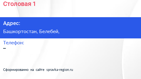 Столовая №1 по адресу Башкортостан, Белебей, в дальнейшем Организация, размещена в следующих категориях: