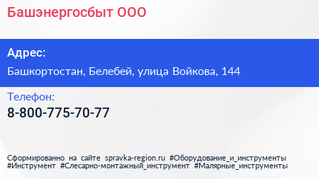 Башэнергосбыт, ООО по адресу Башкортостан, Белебей, улица Войкова, 144 в дальнейшем Организация, размещена в следующих категориях: