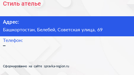 Стиль, ателье по адресу Башкортостан, Белебей, Советская улица, 69 в дальнейшем Организация, размещена в следующих категориях: