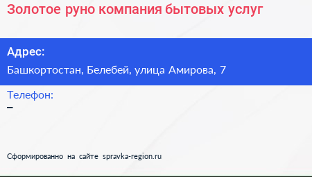 Золотое руно, компания бытовых услуг по адресу Башкортостан, Белебей, улица Амирова, 7 в дальнейшем Организация, размещена в следующих категориях:
