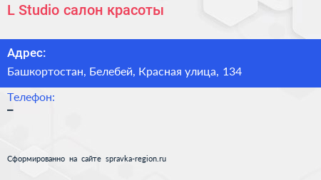 L Studio, салон красоты по адресу Башкортостан, Белебей, Красная улица, 134 в дальнейшем Организация, размещена в следующих категориях: