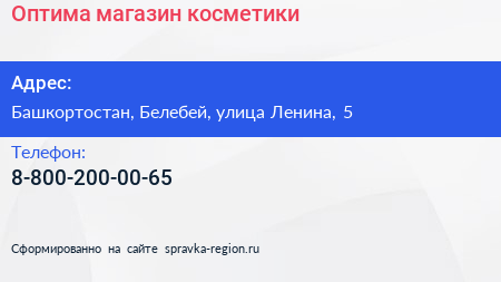 Оптима, магазин косметики по адресу Башкортостан, Белебей, улица Ленина, 5 в дальнейшем Организация, размещена в следующих категориях: