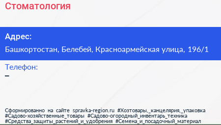 Стоматология по адресу Башкортостан, Белебей, Красноармейская улица, 196/1 в дальнейшем Организация, размещена в следующих категориях: