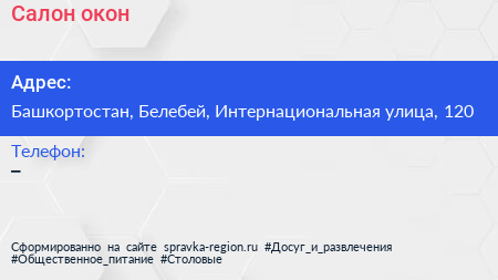 Салон окон по адресу Башкортостан, Белебей, Интернациональная улица, 120 в дальнейшем Организация, размещена в следующих категориях:
