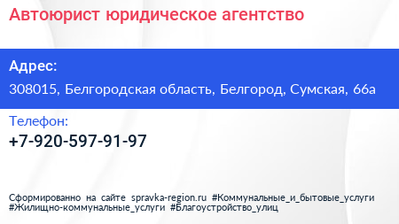 Автоюрист, юридическое агентство по адресу 308015, Белгородская область, Белгород, Сумская, 66а в дальнейшем Организация, размещена в следующих категориях: