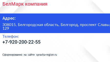 БелМарк, компания по адресу 308015, Белгородская область, Белгород, проспект Славы, 129 в дальнейшем Организация, размещена в следующих категориях: