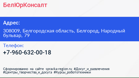БелЮрКонсалт по адресу 308009, Белгородская область, Белгород, Народный бульвар, 79 в дальнейшем Организация, размещена в следующих категориях: