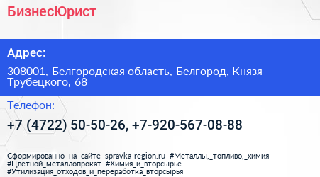 БизнесЮрист по адресу 308001, Белгородская область, Белгород, Князя Трубецкого, 68 в дальнейшем Организация, размещена в следующих категориях: