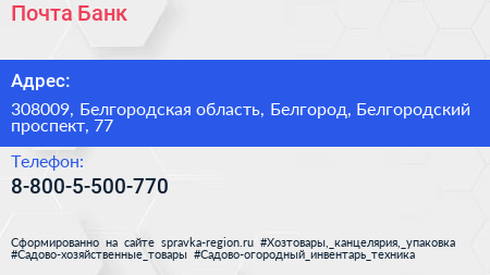 Почта Банк по адресу 308009, Белгородская область, Белгород, Белгородский проспект, 77 в дальнейшем Организация, размещена в следующих категориях: