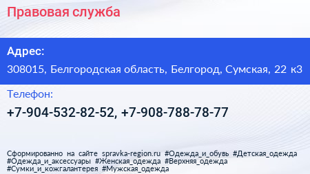 Правовая служба по адресу 308015, Белгородская область, Белгород, Сумская, 22 к3 в дальнейшем Организация, размещена в следующих категориях: