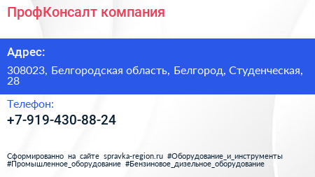ПрофКонсалт, компания по адресу 308023, Белгородская область, Белгород, Студенческая, 28 в дальнейшем Организация, размещена в следующих категориях: