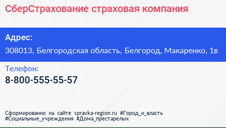 СберСтрахование, страховая компания по адресу 308013, Белгородская область, Белгород, Макаренко, 1в в дальнейшем Организация, размещена в следующих категориях: