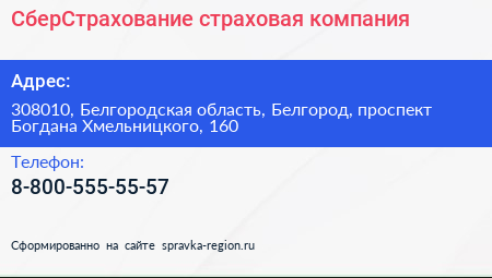 СберСтрахование, страховая компания по адресу 308010, Белгородская область, Белгород, проспект Богдана Хмельницкого, 160 в дальнейшем Организация, размещена в следующих категориях: