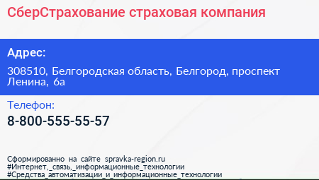 СберСтрахование, страховая компания по адресу 308510, Белгородская область, Белгород, проспект Ленина, 6а в дальнейшем Организация, размещена в следующих категориях: