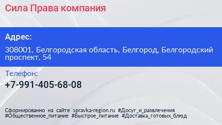 Сила Права, компания по адресу 308001, Белгородская область, Белгород, Белгородский проспект, 54 в дальнейшем Организация, размещена в следующих категориях: