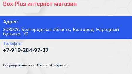 Box Plus, интернет-магазин по адресу 308009, Белгородская область, Белгород, Народный бульвар, 70 в дальнейшем Организация, размещена в следующих категориях: