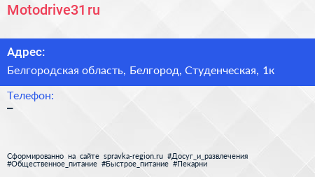 Motodrive31.ru по адресу Белгородская область, Белгород, Студенческая, 1к в дальнейшем Организация, размещена в следующих категориях: