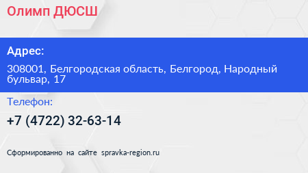 Олимп, ДЮСШ по адресу 308001, Белгородская область, Белгород, Народный бульвар, 17 в дальнейшем Организация, размещена в следующих категориях: