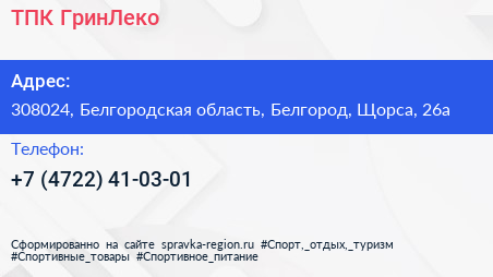 ТПК ГринЛеко по адресу 308024, Белгородская область, Белгород, Щорса, 26а в дальнейшем Организация, размещена в следующих категориях:
