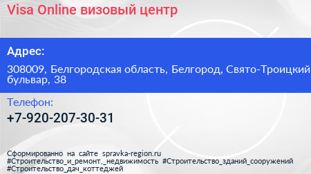 Visa Online, визовый центр по адресу 308009, Белгородская область, Белгород, Свято-Троицкий бульвар, 38 в дальнейшем Организация, размещена в следующих категориях: