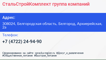 СтальСтройКомплект, группа компаний по адресу 308024, Белгородская область, Белгород, Архиерейская, 2а в дальнейшем Организация, размещена в следующих категориях: