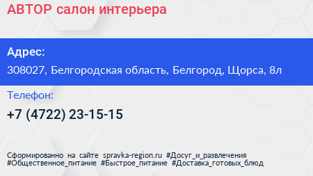 АВТОР, салон интерьера по адресу 308027, Белгородская область, Белгород, Щорса, 8л в дальнейшем Организация, размещена в следующих категориях: