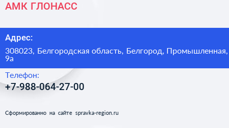 АМК ГЛОНАСС по адресу 308023, Белгородская область, Белгород, Промышленная, 9а в дальнейшем Организация, размещена в следующих категориях: