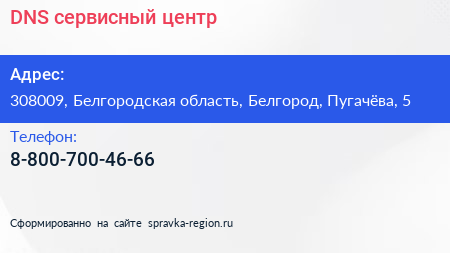 DNS, сервисный центр по адресу 308009, Белгородская область, Белгород, Пугачёва, 5 в дальнейшем Организация, размещена в следующих категориях: