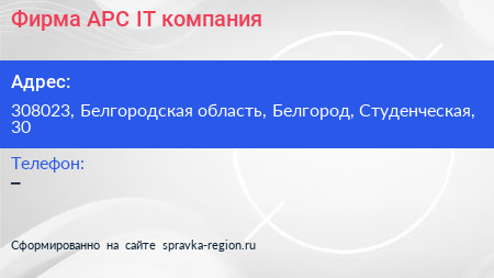 Фирма АРС, IT-компания по адресу 308023, Белгородская область, Белгород, Студенческая, 30 в дальнейшем Организация, размещена в следующих категориях: