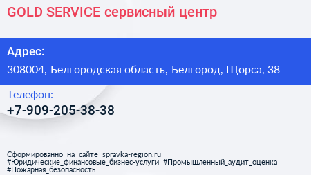 GOLD SERVICE, сервисный центр по адресу 308004, Белгородская область, Белгород, Щорса, 38 в дальнейшем Организация, размещена в следующих категориях: