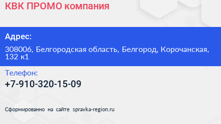 КВК-ПРОМО, компания по адресу 308006, Белгородская область, Белгород, Корочанская, 132 к1 в дальнейшем Организация, размещена в следующих категориях: