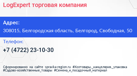 LogExpert, торговая компания по адресу 308015, Белгородская область, Белгород, Свободная, 50 в дальнейшем Организация, размещена в следующих категориях: