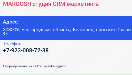 MARGOSH, студия CRM-маркетинга по адресу 308009, Белгородская область, Белгород, проспект Славы, 9г в дальнейшем Организация, размещена в следующих категориях: