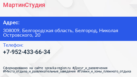МартинCтудия по адресу 308009, Белгородская область, Белгород, Николая Островского, 20 в дальнейшем Организация, размещена в следующих категориях: