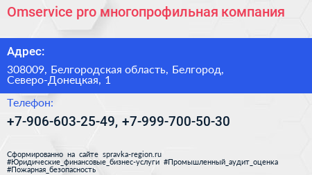 Omservice.pro, многопрофильная компания по адресу 308009, Белгородская область, Белгород, Северо-Донецкая, 1 в дальнейшем Организация, размещена в следующих категориях: