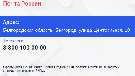 Почта России по адресу Белгородская область, Белгород, улица Центральная, 10 в дальнейшем Организация, размещена в следующих категориях: