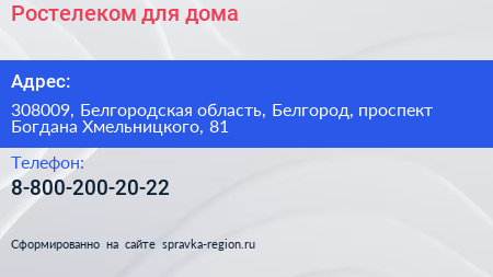 Ростелеком для дома по адресу 308009, Белгородская область, Белгород, проспект Богдана Хмельницкого, 81 в дальнейшем Организация, размещена в следующих категориях: