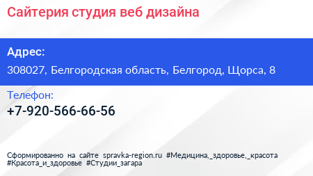 Сайтерия, студия веб-дизайна по адресу 308027, Белгородская область, Белгород, Щорса, 8 в дальнейшем Организация, размещена в следующих категориях: